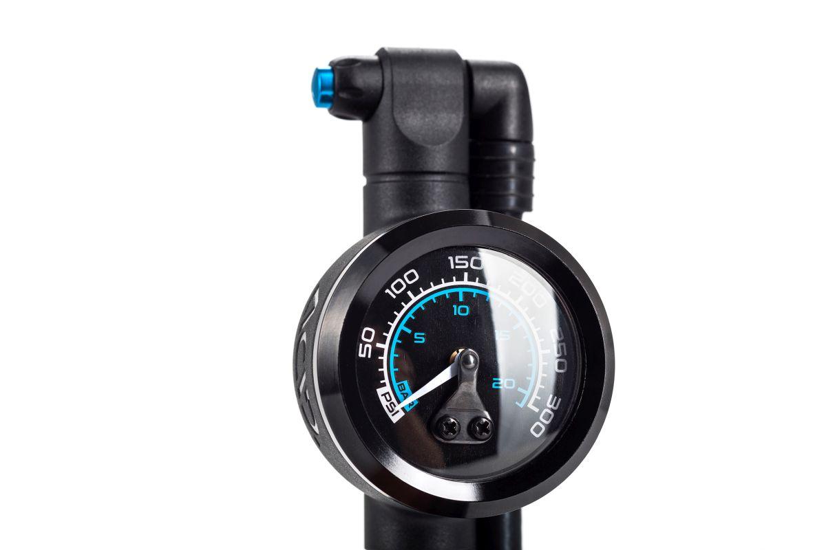 Dämpferpumpe mit 2-stufigem Schrader-Ventilkopf, NF Ergonomics Griff, Präzisionsmanometer, Luftablass-Ventil, 300 psi max.