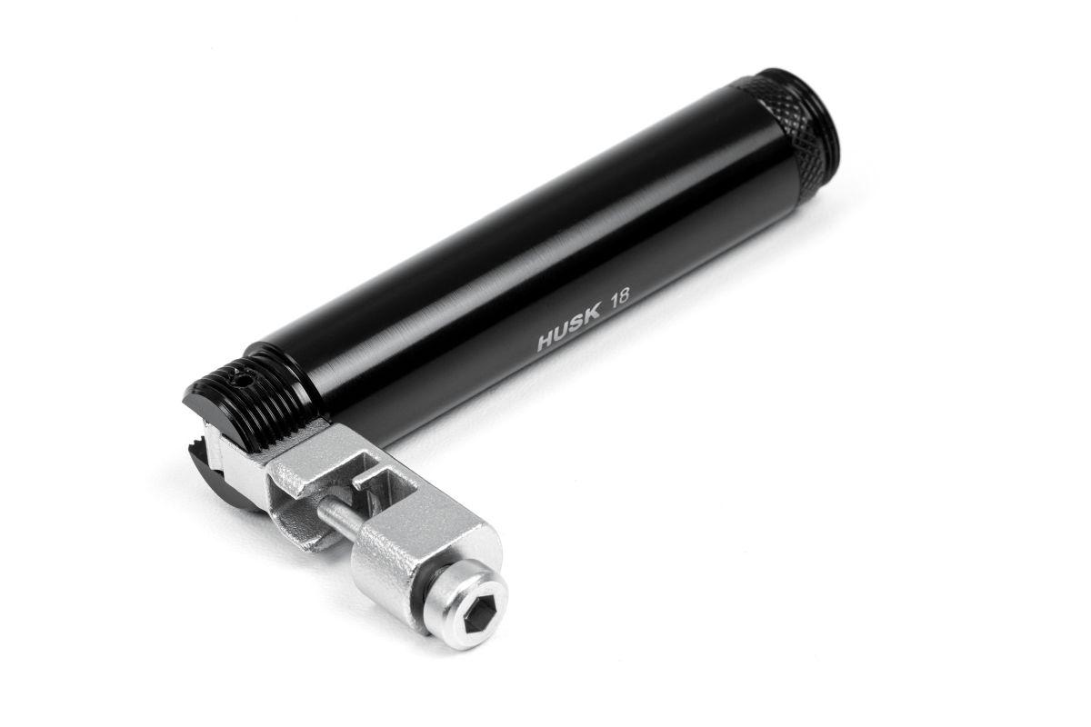 Ein hochwertiger Werkzeugkoffer auf kleinstem Raum und in coolem Design – das ist das ACID Multitool HUSK 18. Die zwei Metall-Tubes liegen perfekt in der Hand. Im Inneren finden 18 Funktionen Platz – gut geschützt vor Schmutz. Der Kettennieter und die BIT-Aufnahmen sind für bessere Hebelwirkung um 90° klappbar. Die beiden Tubes des HUSK 18 können mit dem ACID GILink für HUSK dezent im Lenker versteckt oder mit den ACID Rahmenhalterungen am Flaschenhalter montiert werden.