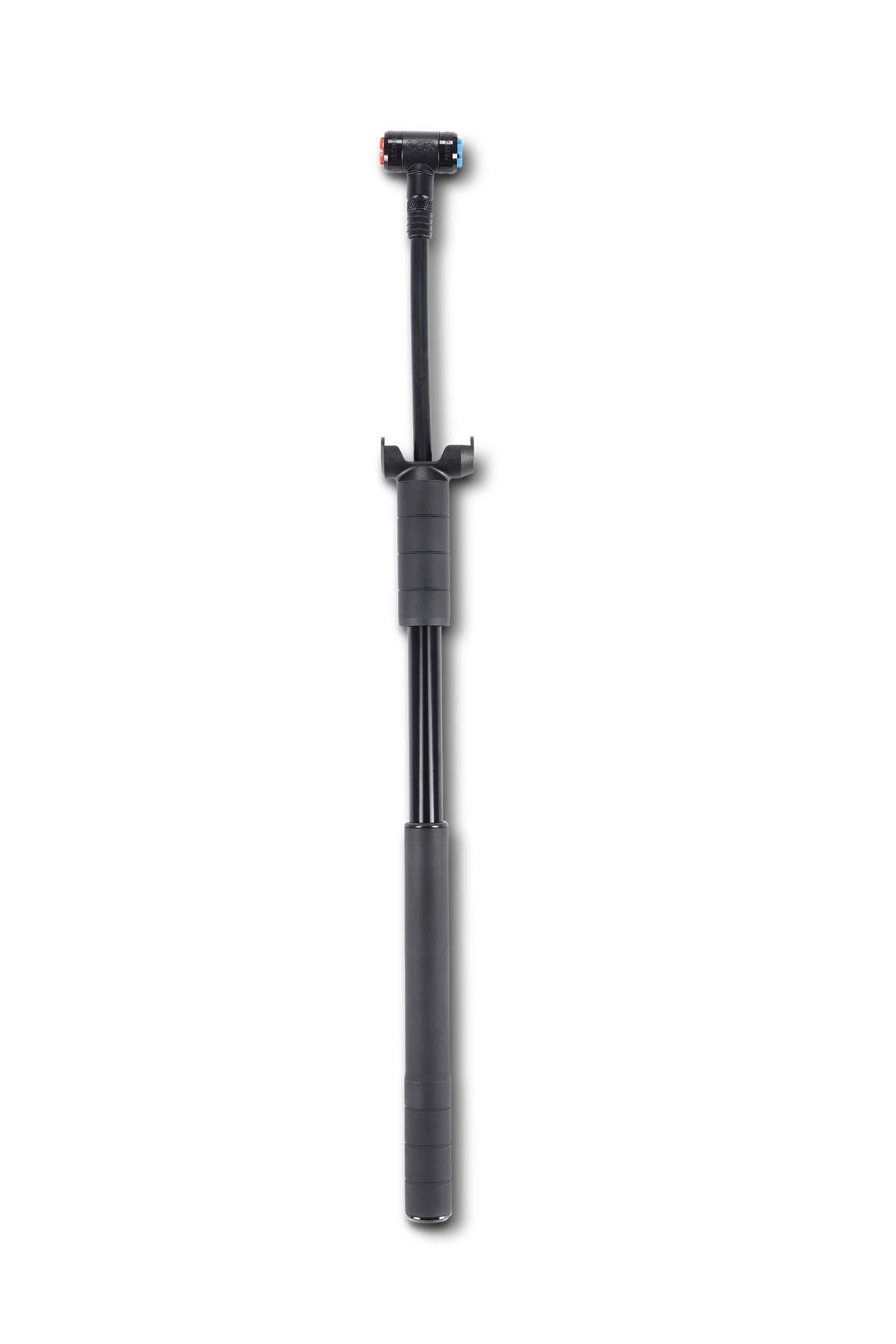 CNC-gedrehte Aluminium-Hybrid-Pumpe für hohen Druck, Kombination aus Minipumpe und CO2- Kartuschenpumpe, EZ-Head für Presta- und Schrader-Ventile, herausziehbarer Schlauch, Griffverriegelung, inklusive Halterung und 16 g CO2-Kartusche, 120 psi max.
