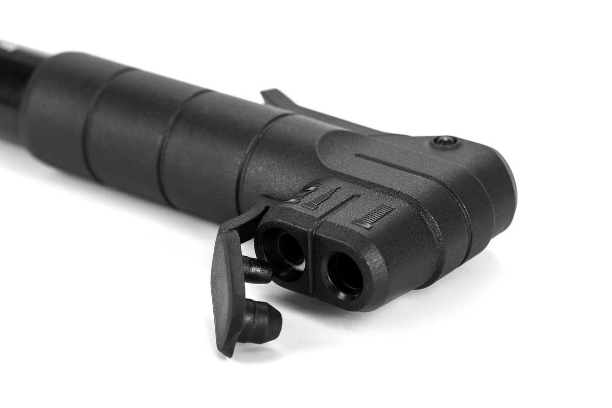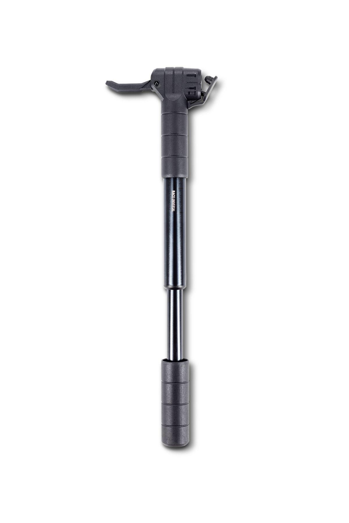 Eine Pumpe für alle Fälle und alle Ventile! Die Race Universal ist mit Presta-, Schrader- und Dunlop-Ventilen kompatibel und sorgt schnell für volle Reifen bis zu einem Druck von 100 psi.