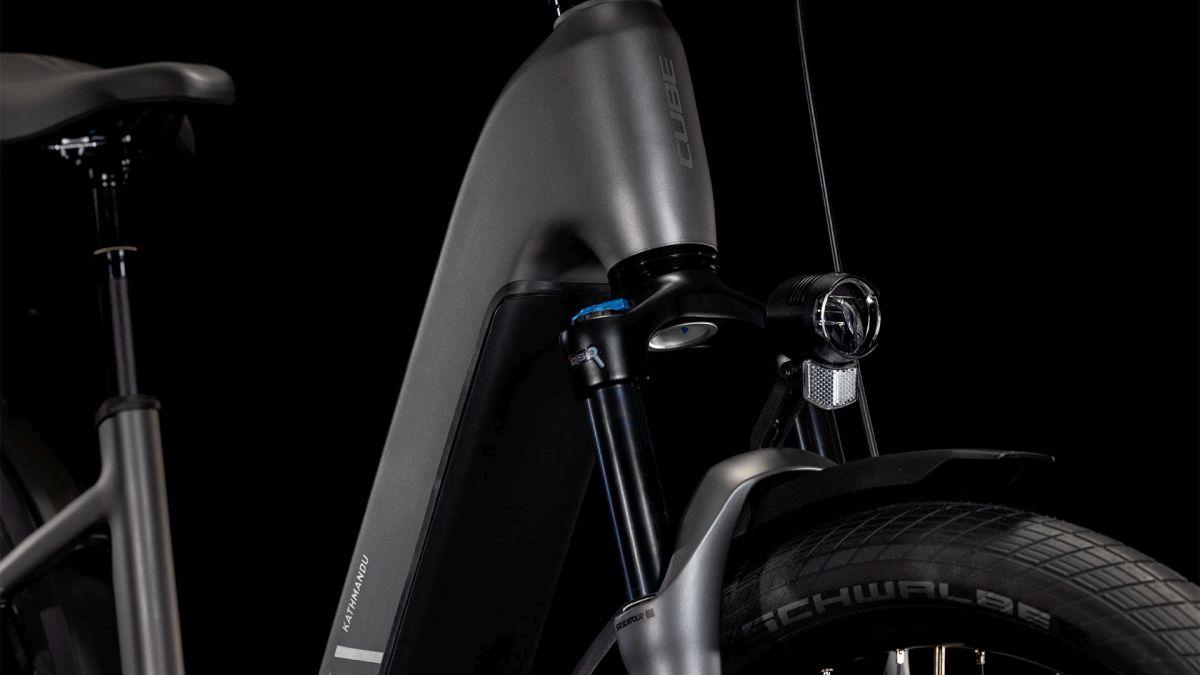 Der Tiefeinsteiger-Rahmen des CUBE Kathmandu Hybrid macht seinem Namen alle Ehre, denn er erleichtert das Auf- und Absteigen und die Tour kann direkt losgehen! Doch da ist noch mehr, zum Beispiel der samt 800 Wh PowerTube Akku ästhetisch und sauber ins Design integrierte CX Motor von Bosch. Unsere Efficient Comfort Geometry arbeitet harmonisch mit der 100 mm Federgabel Hand in Hand, was die Kontrolle vor allem unter schwierigen Bedingungen optimiert. Dazu die interne Zugverlegung, die der cleanen Optik des Chassis in die Karten spielt und den Wartungsaufwand maßgeblich reduziert. Was noch? Ein vielseitiges, beinahe unzerstörbares UDH für einfache Ersatzteilverfügbarkeit, ein integrierter Kettenschutz und unser stabiler, robuster, überaus formschöner integrierter Gepräckträger IC 3.0, auf dem alles Platz findet, was auf Abenteuertour mit muss.
