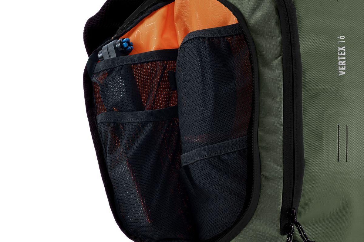 Ein Highlight für Enduro-Fans: Der VERTEX 16 TM ist unser High-Class-Rucksack, vollgepackt mit sinnvollen Features. Dank ergonomisch geformter Schultergurte, Hüftgurt und dem von CUBE entwickelten NF Ergonomics Rückensystem sitzt er bei allen Fahrmanövern optimal am Rücken. Dein Rücken ist gut polstert und belüftet. Der VERTEX 16 ist ausgestattet mit einem SAS-TEC LB-L Protektor, der gerade mal 150 g wiegt. Protektorenhalterung, Helmhalterung, Brillenfach, Raincover ... alles dabei. Innentaschen, Hüftgurttasche, ein Smartphone-Fach und zwei seitliche Werkzeugfächer bringen Ordnung in deinen Bike-Tag. Trinkblasen-Kompatibilität ist Ehrensache. Und: Das Innenfutter ist nicht schwarz, sondern farbig, damit du dich im Rucksack schneller und besser zurechtfindest.