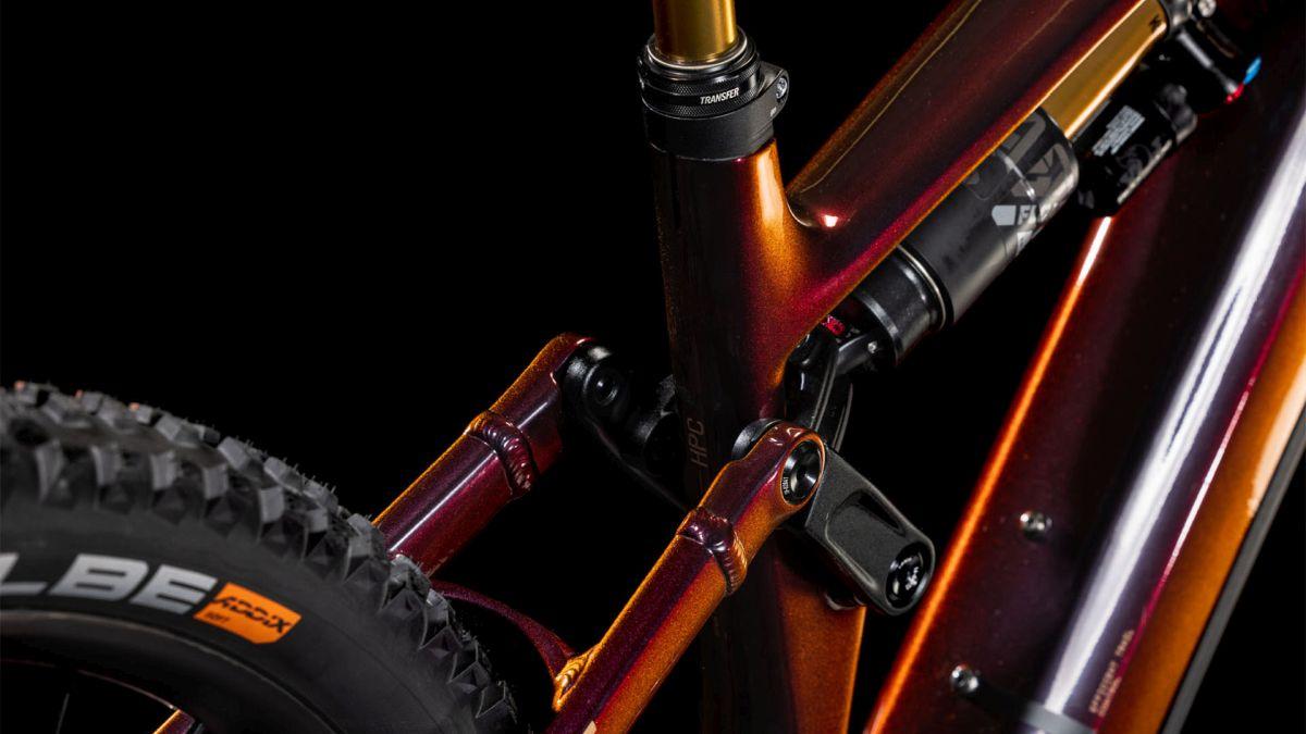 Der Rahmen des Stereo Hybrid ONE77 HPC ist wahrlich eine Klasse für sich, denn hier treffen 170 mm Federweg an der Front und am Heck auf ein Mullet-Set-up mit einem 29 Zoll Vorderrad und 27.5 Zoll Hinterrad. Damit werden Big-Mountain-Trail-Träume wahr! Wie immer bei CUBE maximal detailverliebt konstruiert auch der Rest: Integrated Cable Routing sorgt für einen supercleanen Look und reduziert den Wartungsaufwand auf ein Minimum. Dazu kommt ein Steuersatz zur Winkelverstellung, mit dem sich das Handling an individuelle Vorlieben und Anforderungen anpassen lässt. Außerdem haben wir den 800 Wh starken PowerTube Akku gleich über dem Bosch CX Motor sauber und formschön ins Carbon-Unterrohr integriert. Für einfachere Ersatzteilverfügbarkeit gibt's ein UDH am Aluminium-Hinterbau – und weil wir auch eine Direct Mount Kettenführung verbaut haben, geht's mit diesem Fully selbst bei schwierigen Bedingungen weiter, weiter und immer weiter.