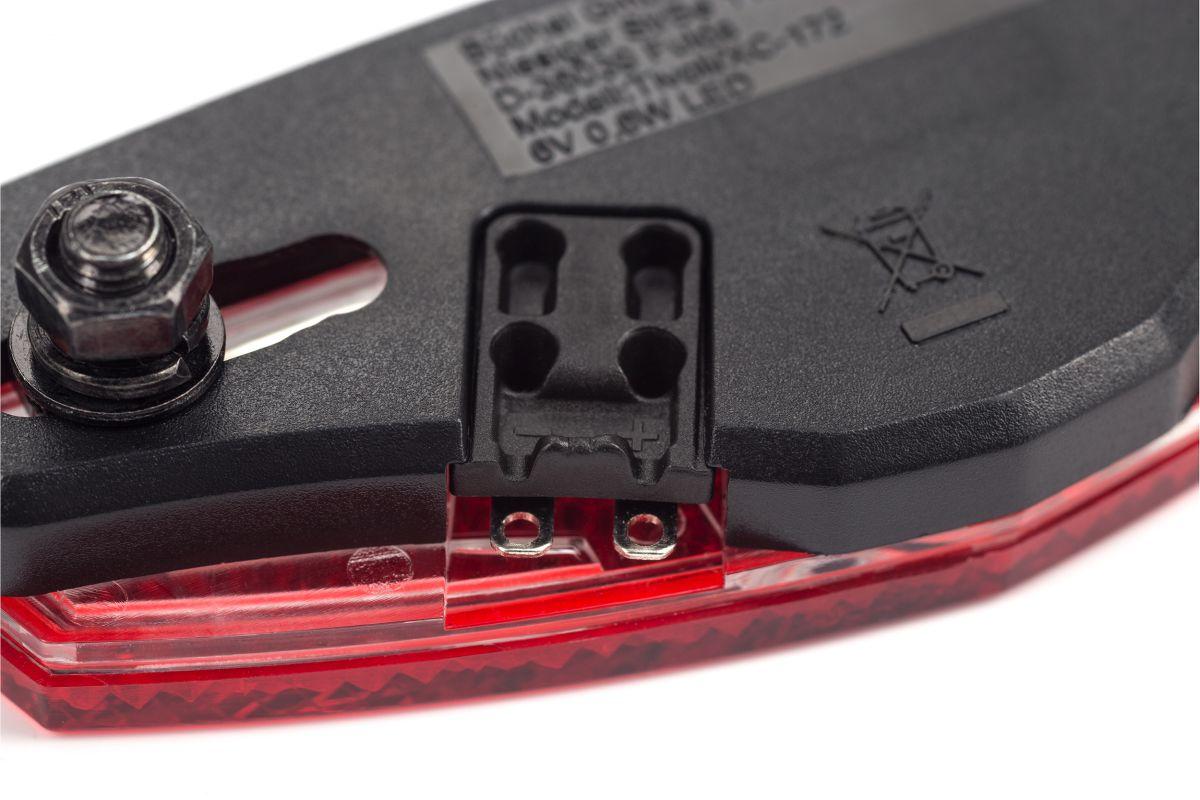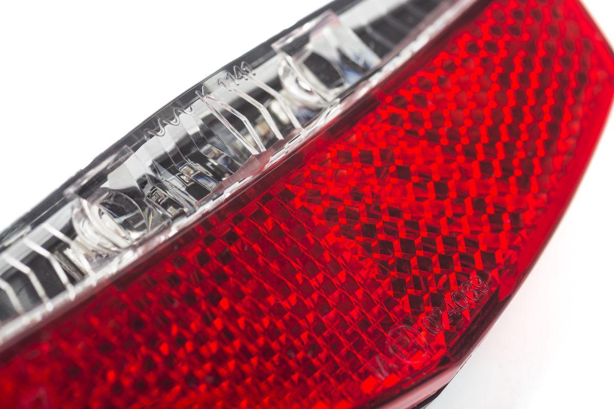 LED-Rücklicht, StVZO zugelassen, integrierter Reflektor, Standlicht durch Kondensator, Montagebereich 50 oder 80 mm, geeignet für Fahrräder mit Nabendynamo