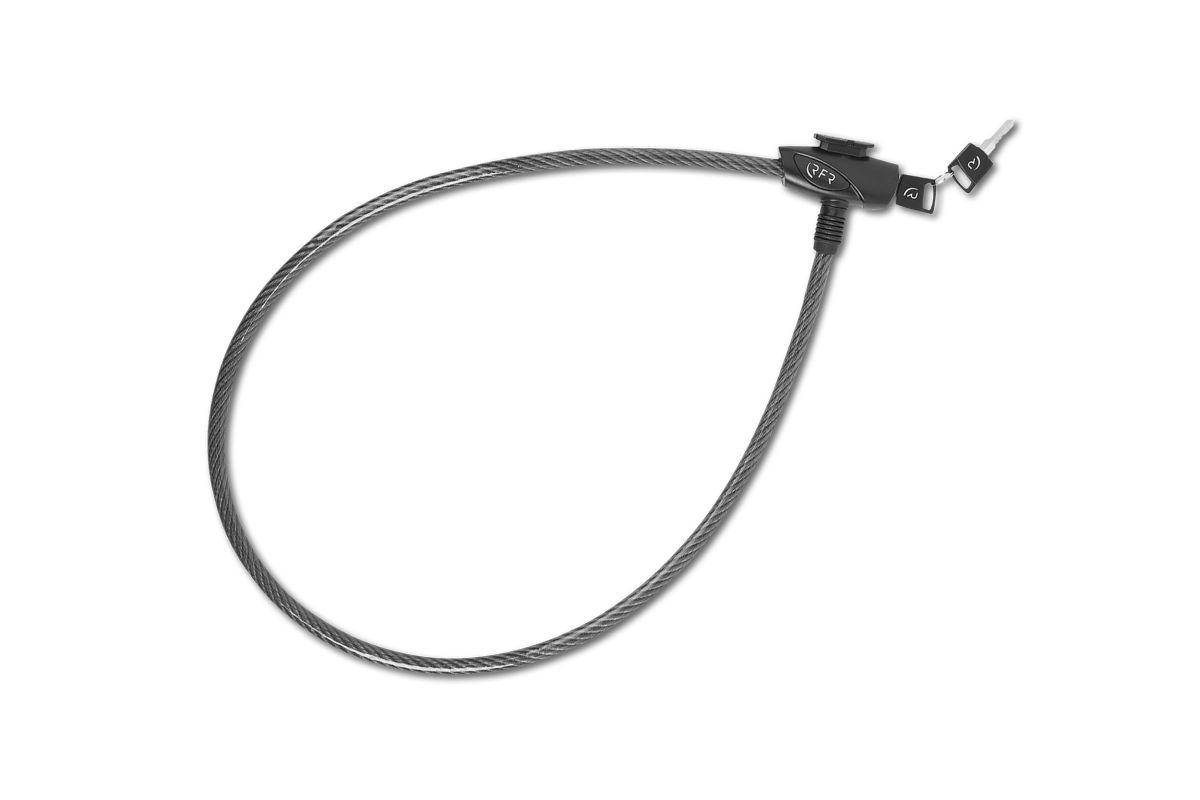 extra sicheres Kabelschloss, Kabel und Schlosskörper korrosionsgeschützt, Kunststoffcover schützen den Rahmen vor Kratzern, geprüft auf mechanische Festigkeit, abnutzungsresistent, schadstoffarm zertifiziert, Aufnahme für Universalhalter, inkl. zwei Schlüssel