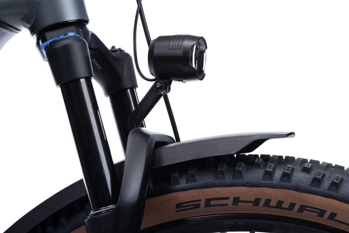LED-Frontlicht für E-Bikes, StVZO zugelassen, 60 Lux, Eingangsspannung 12 V (DC), Nennleistung 3,6 W, 140 cm Lichtkabel mit Stecker für BOSCH Motoren, inkl. Gabelhalterung Universal HPP, inkl. K-Reflektor, Schutzklasse IPX4