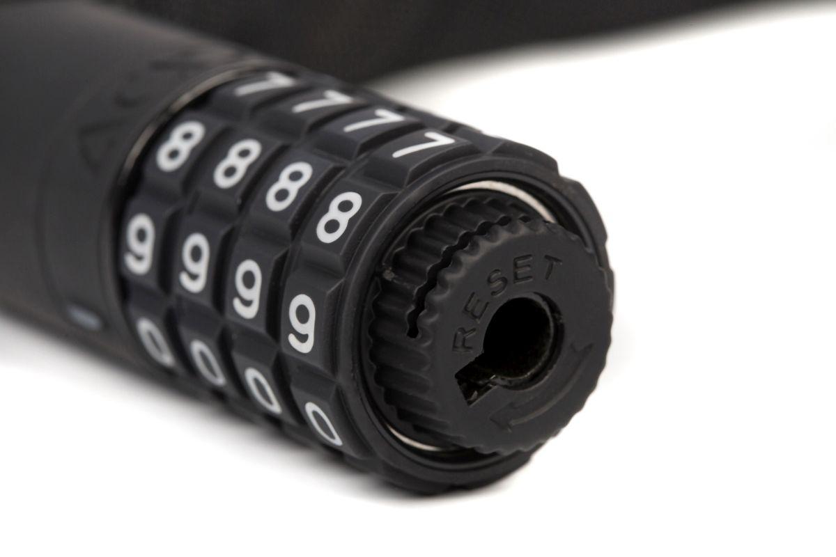 extra sicheres Kettenschloss, GRIP+ vollständig gummierte Oberflächen, geräuscharm, Kette und Schlosskörper korrosionsgeschützt, Kunststoffcover schützen den Rahmen vor Kratzern, geprüft auf mechanische Festigkeit, schadstoffarm zertifiziert, frei einstellbarer Zahlencode