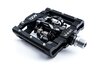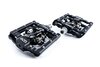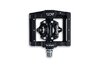 Klick-Pedal mit beidseitigem, schwimmend gelagertem Klick-System, SPD-kompatibel, CNC-gefräster Aluminiumkörper und CrMo Achse, große Standfläche, flache Bauweise, sieben austauschbare und einstellbare Pins pro Seite, gedichtetes Patronengleitlager und zwei gedichtete IndustrielagerMaterial: Aluminium