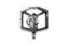leichtes Combo-Pedal mit einseitigem Klick-System, SPD-kompatibel, CNC-veredelter Aluminiumkörper und CrMo Achse, angefaste Kanten für erhöhte Bodenfreiheit in Kurven, große Standfläche, extrem flache Bauweise, 16 austauschbare und einstellbare Pins, gedichtete IndustrielagerMaterial: Aluminium