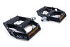 leichtes Flat-Pedal, Aluminiumkörper und CrMo Achse, angefaste Kanten für erhöhte Bodenfreiheit in Kurven, große Standfläche, flache Bauweise, zwölf Pins pro Seite, LSL-Bushing, integrierte ReflektorenMaterial: Aluminium