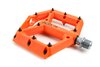 leichtes Flat-Pedal, Nylon-verstärkter-Kunststoff-Körper und CrMo Achse, angefaste Kanten für erhöhte Bodenfreiheit in Kurven, große Standfläche, extrem flache Bauweise, neun austauschbare und einstellbare Pins pro Seite, gedichtete IndustrielagerMaterial: Kunststoff