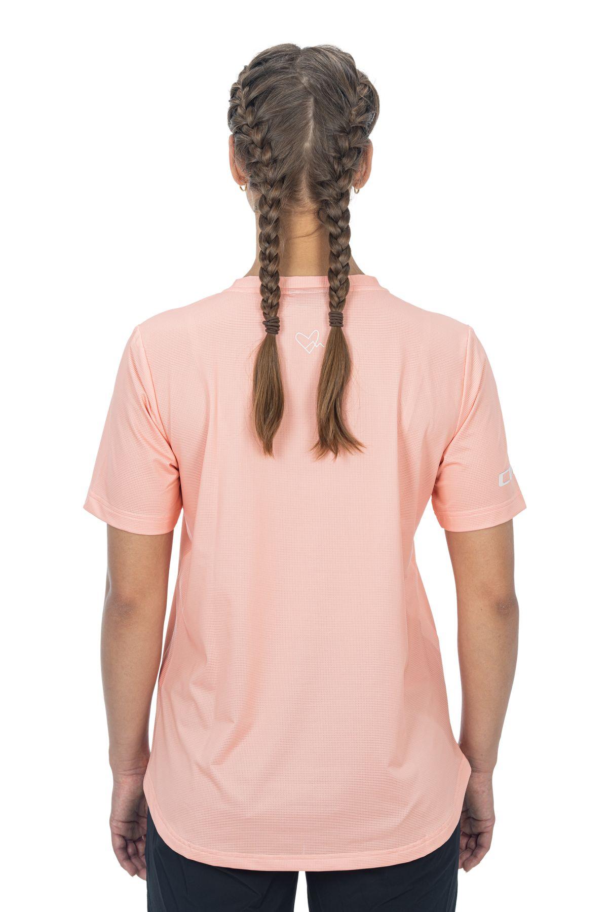 feminine Print Details, atmungsaktives, schnell trocknendes Material, reflektierende Elemente, Model ist 168 cm groß, Model trägt Größe S