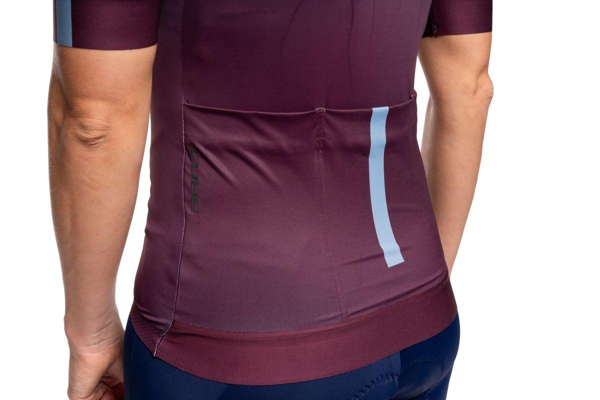enganliegend, weicher Innensaum mit breitem Silikonband, durchgehender Frontreißverschluss, 3-teilige Rückentasche, wasserabweisende Reißverschlusstasche hinten, widerstandsfähiges und schnelltrocknendes Funktionsaterial, nahtfreier Schulterbereich, reflektierende Elemente, Model ist 168 cm groß, Model trägt Größe S