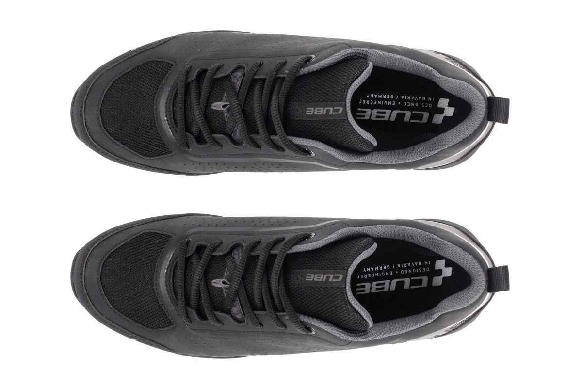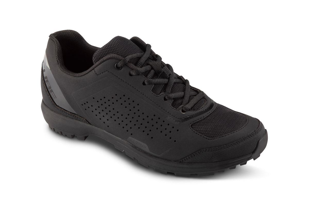 Stylischer All Terrain Schuh mit praktischem Schnürverschluss und toller Passform dank ergonomisch optimierten CUBE Natural Fit Leisten und Innensohle. Clevere Features wie die Einstiegshilfe und der Laceholder machen das Leben leichter, während die griffige Gummi-Außensohle für Klickpedale auch beim Gehen tollen Halt gibt. Das robuste Obermaterial und die verstärkte Zehenkappe schützen den Fuß, dank Luftlöcher und Mesh-Konstruktion bleibt selbiger aber immer angenehm belüftet. Das reflektierende Fersenelement schenkt zusätzliche Sicherheit durch mehr Sichtbarkeit bei schlechten Lichtverhältnissen.