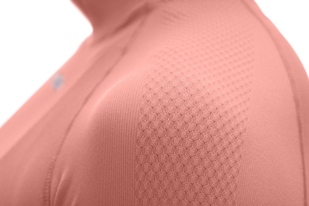 nahtlose Verarbeitung, ergonomischer Schnitt mit Stützzonen, hoher, eng anliegender Kragen, wärmend, Model ist 168 cm, Model trägt Größe XS/S