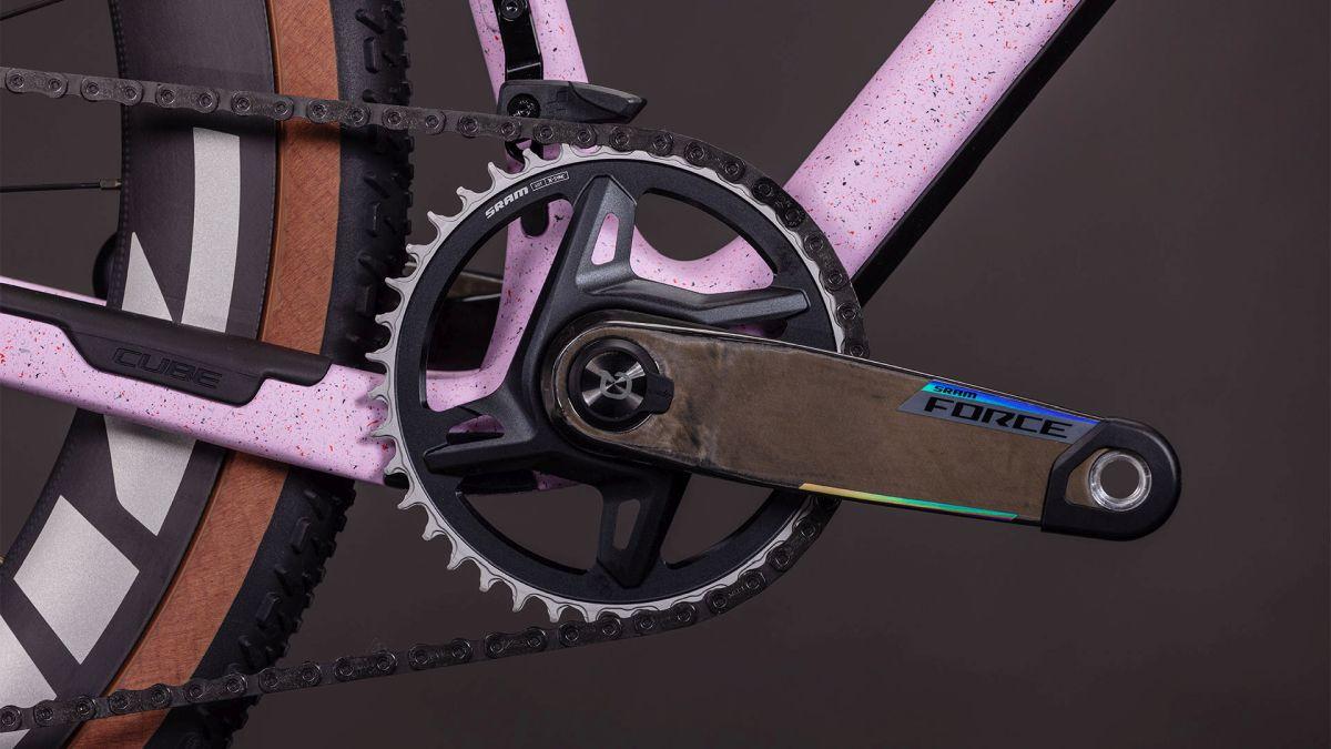 Das Nuroad C:62 SLX begeistert Gravel-Fans nicht nur mit seinem überaus detailverliebt konstruierten CUBE C:62® Carbonrahmen samt passender Gabel, sondern auch mit seinen Gravel-spezifischen Zipp 303 XPLR S Laufrädern mit hohen Felgen für den entscheidenden Vorteil in Sachen Aerodynamik und Speed beim Rennen. Auch die 45 mm G-One RX Pro Reifen von Schwalbe rollen pfeilschnell dahin – gebremst wird mit den hydraulischen Force AXS Scheibenbremsen von Sram. Ebenso aus dem Hause Sram stammt die robuste 12-fach GX Eagle Transmission, die absolut zuverlässig und sauber von Gang zu Gang schaltet. Übrigens: Am Sram Force Kurbelsatz ist ein Powermeter integriert – für den perfekten Überblick über die eigene Performance. Also nichts wie los, das Gravel-Abenteuer wartet schon!