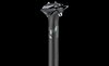 Vollcarbon Sattelstütze aus UD Carbonfaser. Neben dem gerigen Gewicht war oberste Priorität ein angenehmes Flexverhalten sowie eine hohe Funktionssicherheit und eine einfache Bedienbarkeit. Maximaler Flex ist nicht alles. Zu stark flexende Sattelstützen haben entscheidende Nachteile: 1. Sie lassen den Fahrer bei hoher Trittfrequenz aufschaukeln 2. Sie haben einen unangenehmen Kickback beim sitzenden überfahren von Hindernissen wegen der nicht vorhandenen Dämpfung Deshalb: Flex ja, aber bitte kontrolliert. Natürlich achten wir auch auf Kleinigkeiten, die das Bikerleben ein kleines Stückchen einfacher machen. So sind beispielsweise die in der oberen Schale eingelegten Gewindeeinsätze durch einen EPDM O-Ring gegen das herausfallen -beim herausdrehen der Schrauben bei der Sattelmontage- gesichert.