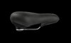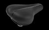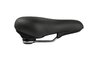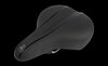 großer, breiter City-Sattel für eine große Auflagefläche und Druckverteilung, Dual-Density Technologie für die Entlastung an den Sitzknochen, ergonomische Aussparung für empfindliche Nervenbereiche, Elastomer-Federn für eine weitere Druckentlastung, Genitalaussparung in der SattelschaleMaterial: PU Obermaterial, Dual-Density Sattelschale