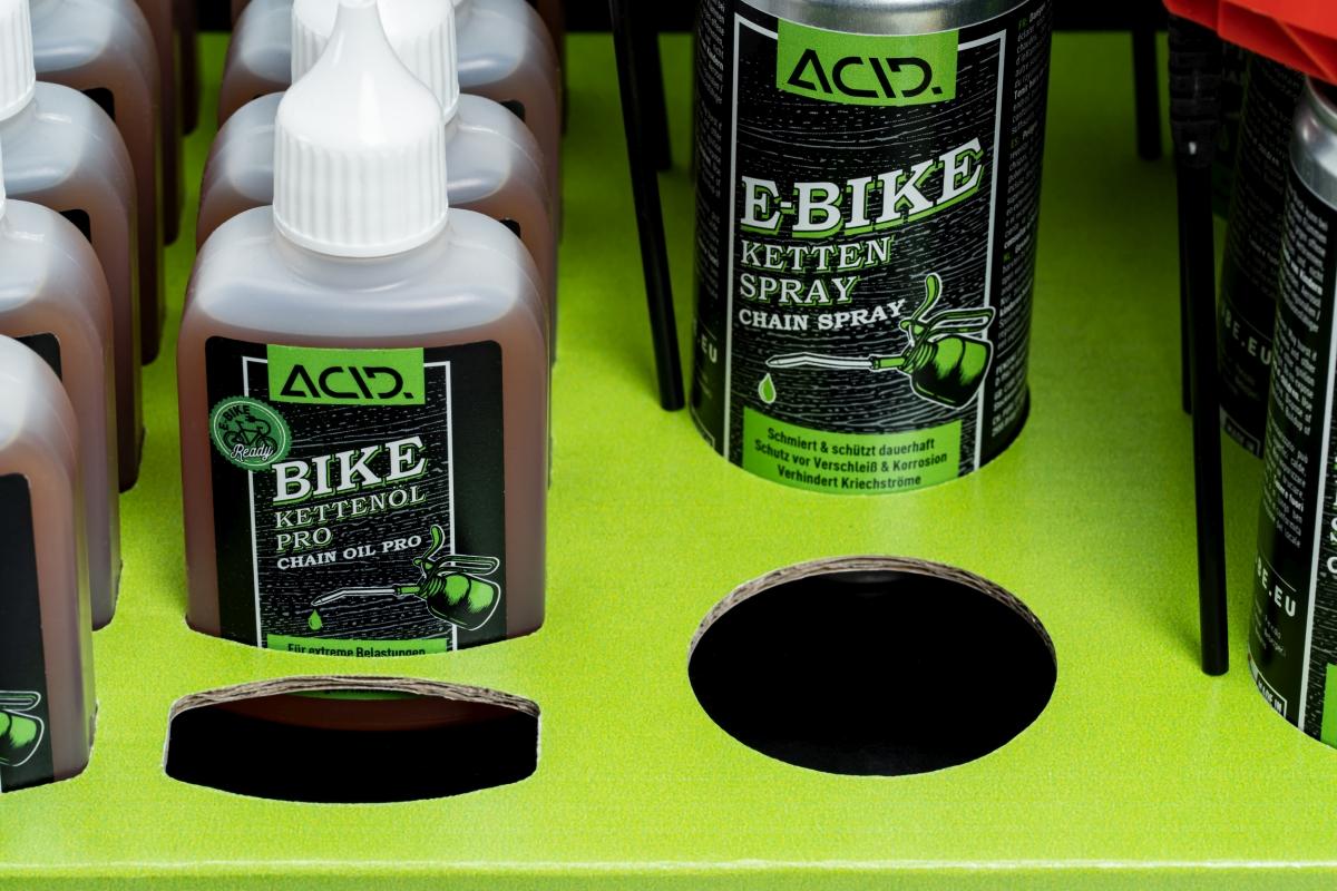 Inhalt: Das Set beinhaltet: 12x #93528 Bike Federgabelspray, 12x #93427 Bike Rahmenschutz, 12x #93426 Bike Antriebsreiniger, 6x #93424 Bike Reiniger, 24x #93423 Bike Reinigungs- & Pflegetuch, 12x #93422 Bike Kettenöl PRO, 6x #93421 Bike Kettenspray, 6x #93420 E-Bike Kettenspray, 1x #7541 Careline Thekendisplay