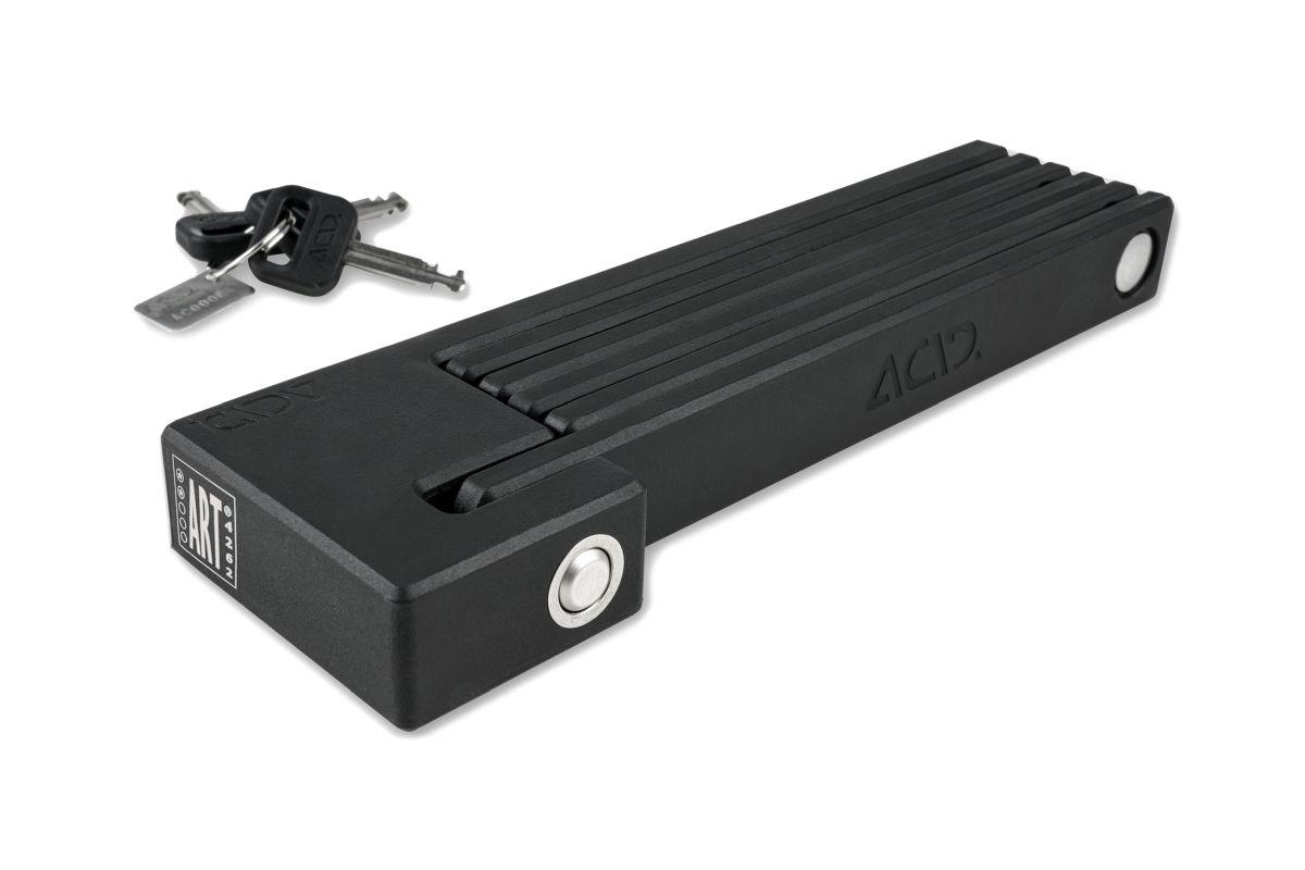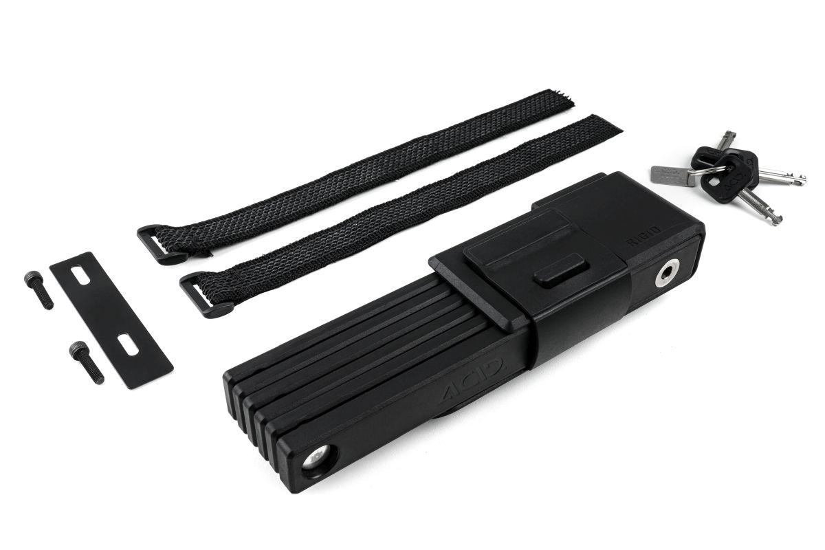 Das hochsichere Faltschloss RIGID 90 ist aus speziell gehärtetem rostfreien Hochleistungsstahl gefertigt und genügt durch die ART2 Zertifizierung allerhöchsten Ansprüchen. Ein solider, gefederter Bolzen sorgt sowohl für eine sehr einfache Handhabung als auch für sicheres Verschließen. Durch das schlichte und schlanke Design ist das gewichtsoptimierte 90cm lange Faltschloss nicht nur handgerecht und griffig, sondern passt nahezu an jedes Fahrrad. Der flache Halter mit seitlicher Öffnung lässt sich mühelos variabel verschrauben oder mit rutschfesten Klettverschlüssen befestigen. Das Schloss hält durch seine besonders hochwertigen Materialien und die präzise Verarbeitung immensen Aufbruchsversuchen und extremer Witterung langfristig stand. Der perfekte Schutz für jede Situation.