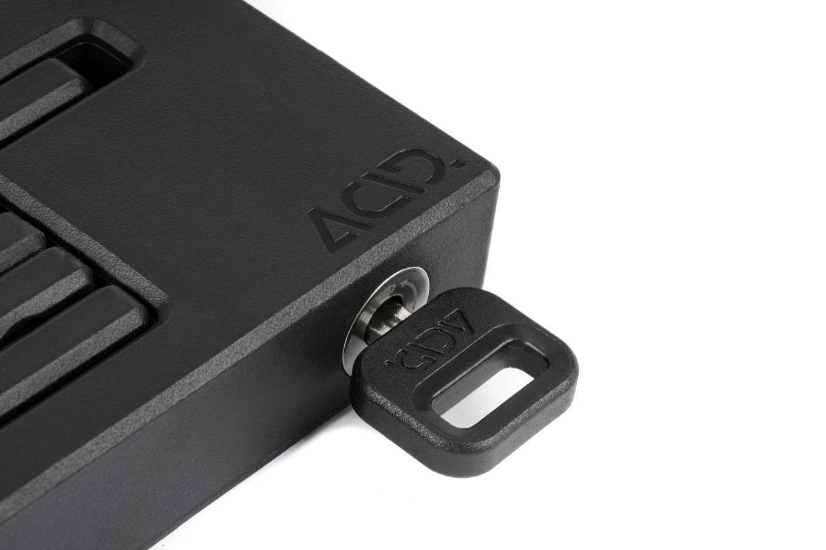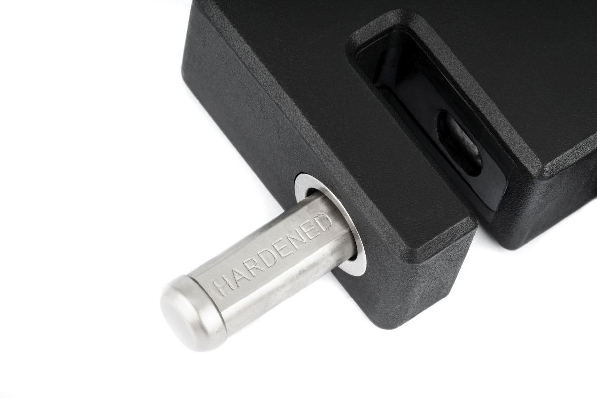 hochsicherer Scheibenzylinder, Kunststoffoberfläche schützt den Rahmen vor Kratzern, ART2 Zertifizierung, Zugelassen von ENRA (nur Deutschland), speziell gehärteter Verschlussbolzen, rostfreier Hochleistungsstahl, geprüft auf mechanische Festigkeit, Lockpicking geschützt, Eis-Spray getestet, Sägeschutz, abnutzungsresistent, schadstoffarm zertifiziert, Halterung mit zusätzlicher Klettverschlussanbringung , zwei M5 Schrauben, inkl. drei Schlüssel