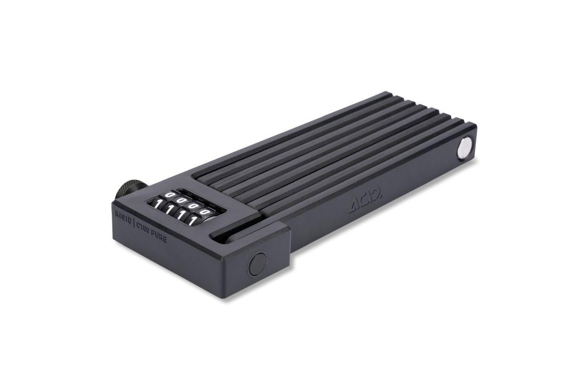 Praktisch für alle, die öfter mal Schlüssel verlieren: Das ACID Faltschloss RIGID PURE C100 ist ein Zahlenschloss mit vier einstellbaren Zahlenrädern und 100 cm Länge. Es ist aus rostfreiem Hochleistungsstahl gefertigt, abnutzungsresistent, mit Sägeschutz und speziell gehärtetem Verschlussbolzen. Die Kunststoffoberfläche schützt den Rahmen deines Fahrrads vor Kratzern. Das Schloss hält durch seine besonders hochwertigen Materialien und die präzise Verarbeitung Aufbruchsversuchen und extremer Witterung langfristig stand. Der flache Halter mit seitlicher Öffnung lässt sich mühelos variabel verschrauben oder mit rutschfesten Klettverschlüssen befestigen.