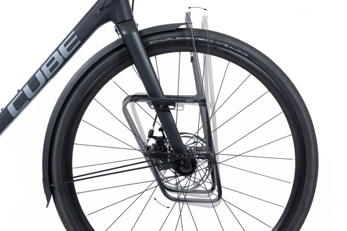 Der ACID Frontgepäckträger FORK LOWRIDER ist der erste ACID Gabelgepäckträger, perfekt für alle CUBE NUROAD und Trekkingbikes. Sein innovatives, verwindungssteifes Design erlaubt den sicheren Transport von Seitentaschen an der Gabel und hält bis zu 18 Kilogramm aus. Der Frontgepäckträger wird an den Gewindepunkten der Gabel montiert. Das Besondere: Die Schraubpunkte am FORK LOWRIDER lassen sich verschieben. So passt er an verschiedenste Fahrräder.