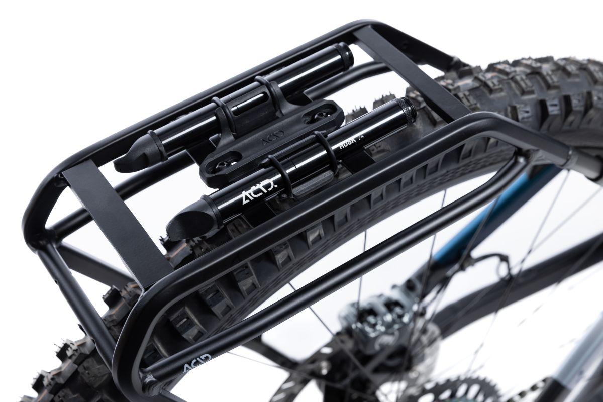 Innovative Gepäckträgerlösung für Full Suspension CUBE-Räder mit Alu-Hinterbau, Umrüsten von CUBE Full Suspension Rädern für urbane Abenteuer, Kompatibel mit vielen ACID-Produkten, Kompatibel mit ACID-Lichtern und -Reflektoren, Kompatibel mit ACID Spanngurten, Kompatibel mit RILink-Taschen und -Körben, Kompatibel mit Gepäckträgerseitentaschen von ACID und anderen, Aufnahme für Zubehör wie das ACID HUSK Tool mit passender Halterung