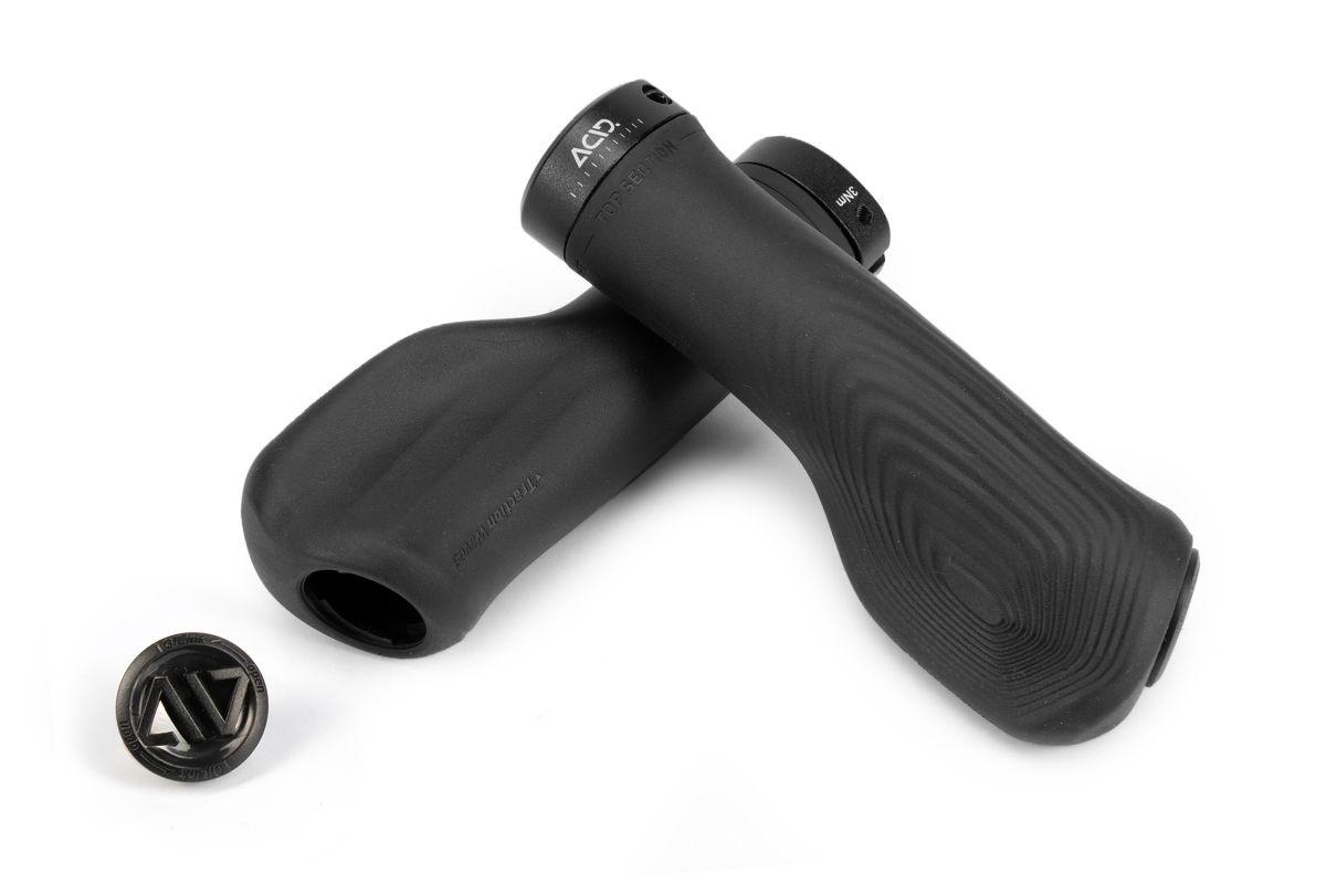 NF Ergonomics Philosophie angewandt auf Flexibilität und wechselnde Untergründe, Comfort Curve geformte Oberseite zur maximierung der Handauflagefläche, Nach innen abgesenkter Flügel zur Entlastung des Handgelenks, Traction Waves auf der Unterseite für einen besseren Halt, Aluminium Innenklemmung, In zwei Größen erhältlich, ACID GILink zur Montage von Zubehör Teilen wie Bar Ends oder Spiegeln