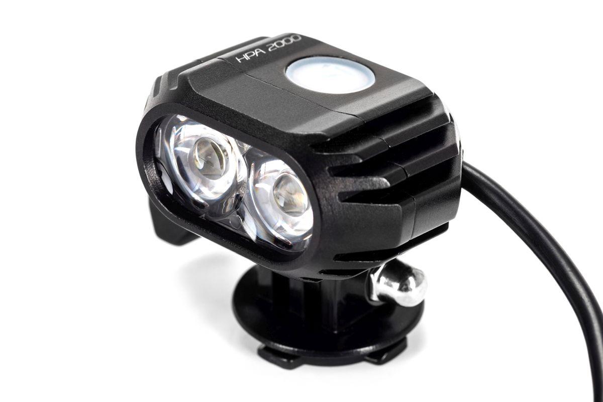LED-Licht mit bis zu 2000 Lumen, inkl. Funkfernbedienung, 2x CREE XM-L2 LED, externer Panasonic-Akku mit Batterieindikator und Rücklicht-Funktion, 7 Lichtfunktionen inklusive SOS-Signal, Schutzklasse IP68, inkl. Helmhalter und Stirnband mit X-Lock Befestigungssystem, inkl. Transporttasche, kompatibel mit GoPro Halterungen