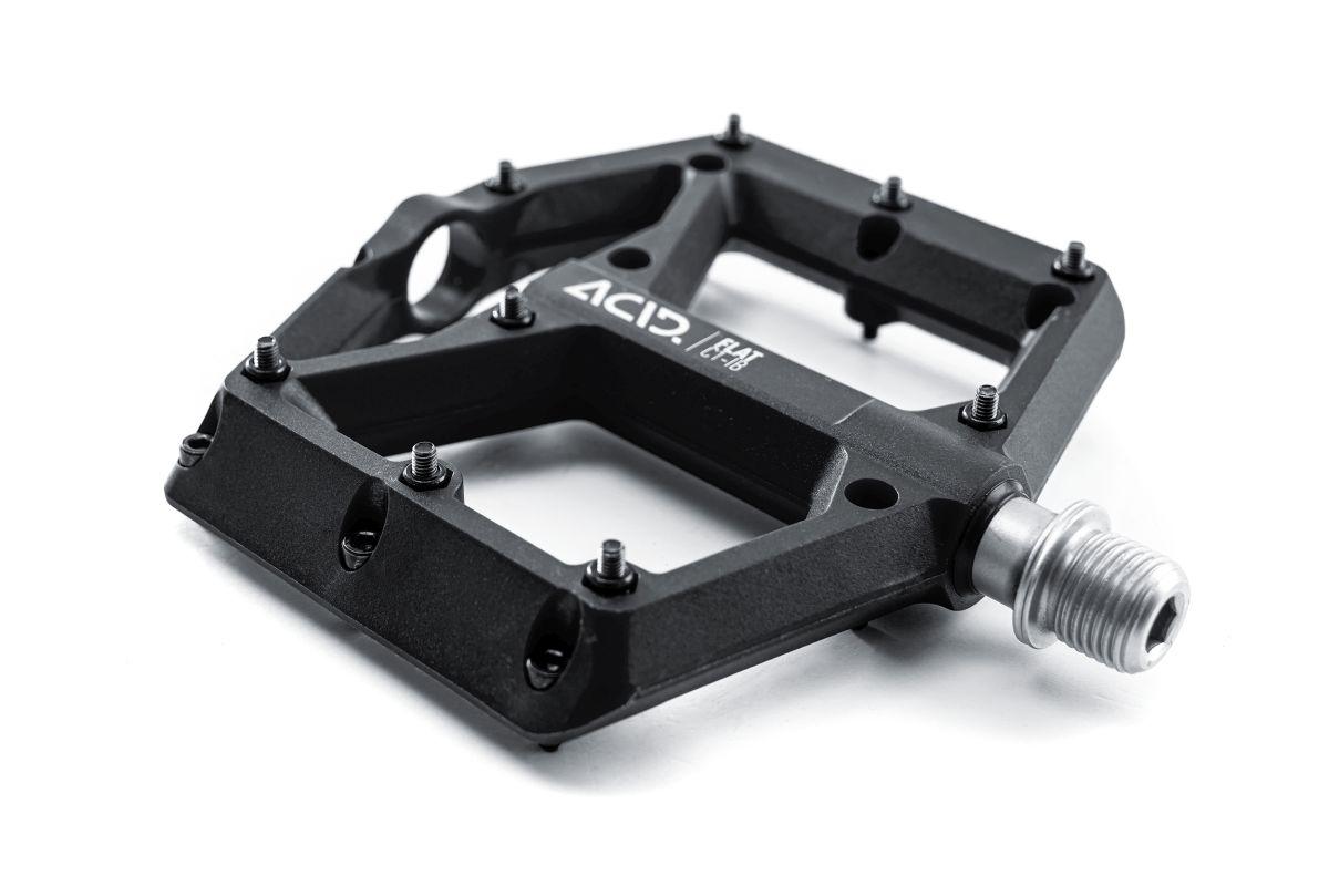 Hier im Bikepark kenne ich jeden Anlieger, jeden Sprung und jede Wurzel. Adrenalin pur! Auf meine ACID FLAT Pedale kann ich mich dabei voll verlassen. Mit ihren einstellbaren Pins und der großen Standfläche fühle ich mich auch im gröbsten Wurzelteppich sicher mit dem Bike verbunden und kann mich doch sofort davon lösen, wenn der Trick mal nicht so klappt wie geplant.
