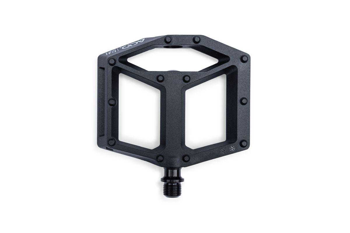 leichtes Flat-Pedal, Nylon-verstärkter-Kunststoff-Körper und CrMo Achse, angefaste Kanten für erhöhte Bodenfreiheit in Kurven, große Standfläche, flache Bauweise, zwölf Pins pro Seite, LSL-Bushing, integrierte Reflektoren