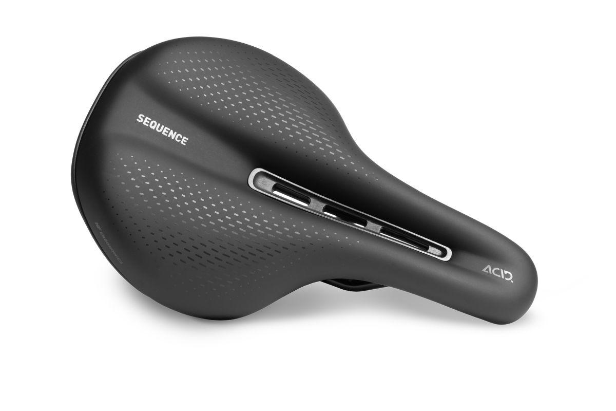 Der ACID Sattel SEQUENCE ist ein auf die männliche Anatomie abgestimmter High-End-Trekkingsattel. Die Dual-Schaum-Polsterung sorgt durch ein speziell geformten Trägerschaum für den Halt des Beckens und kombiniert mit dem weicheren Deckschaum für hohen Sitzkomfort. Sein für Männer optimierter Ergo-Relief-Channel mit zentraler Aussparung entlastet den Genitalbereich. Die Deep-Shell, Vertiefungen unterhalb der Sitzknochen, sorgen für eine verbesserte Druckverteilung und unterstützen die natürliche Beckenbewegung beim Pedalieren. Mit dem integrierten SILink kann Zubehör einfach montiert werden. Optimiert für die Sitzposition Bent Forward (Saddle Finder B1).