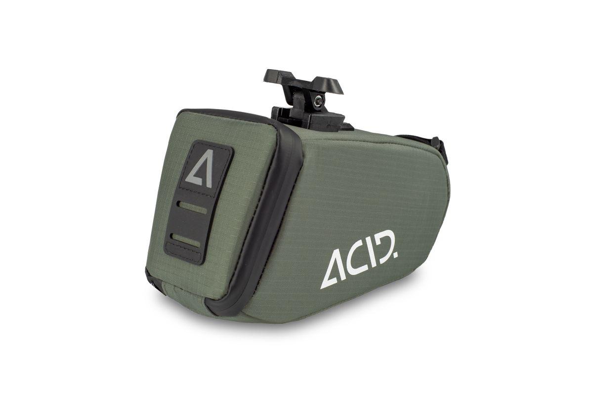 Befestigung mit CUBE-Satteladapter (inklusive), Befestigung mit ACID x Natural Fit Satteladapter SILink (inklusive), schmale Form, Innentasche, wasserabweisender Reißverschluss, Rücklichtaufnahme