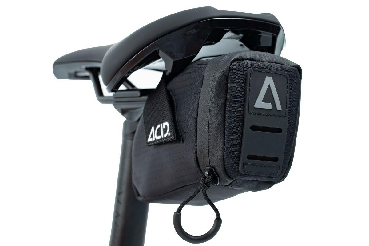 Pack das Wichtigste ein. Die ACID PRO S Satteltasche hält deine Habseligkeiten sicher unter dem Sattel verstaut, wo sie nicht im Weg stehen. Das kompakte Design, der wasserabweisende Reißverschluss und der Rücklichthalter sind typische Details, die eine Satteltasche von ACID besonders machen.