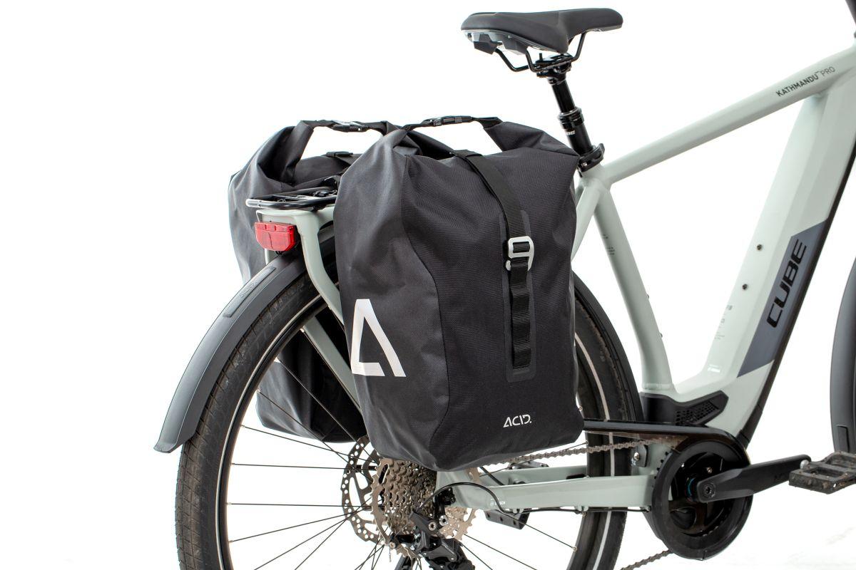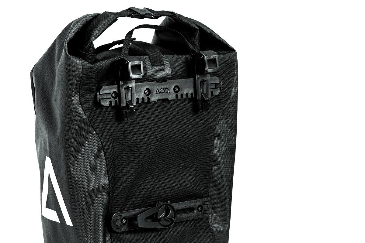 Funktionales, wasserdichtes Travel-Bag mit ACID Einhängesystem für eine schnelle und sichere Befestigung. Erfüllt dank Schultertragegurt auch per Pedes seine Dienste!