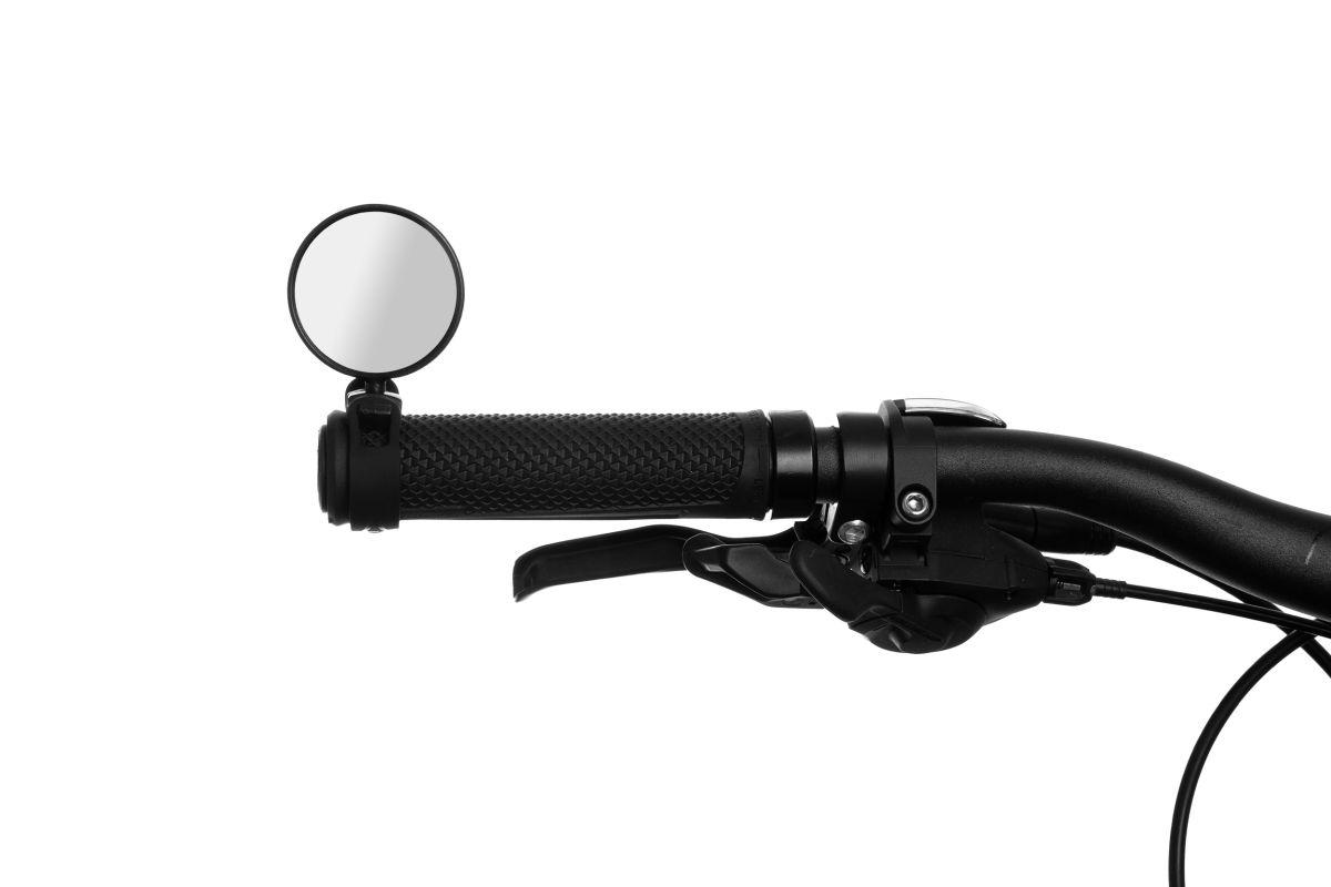 Universelle Befestigungsmöglichkeiten durch Gummistrap, Einhändig einstellbar durch die Drehachse, Größere Spiegelfläche durch konvexe Form, Minimalistisches Design