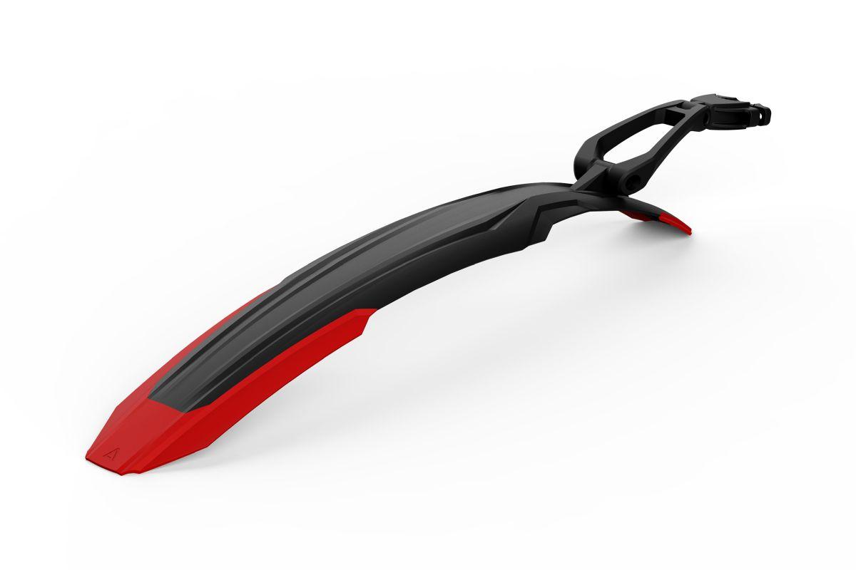 Schutzblech hinten im Enduro-Style für 29" Mountainbikes, einfache Montage mittels Schraub-Klemme, Gummierungen verhindern Verdrehen, optimale Einstellbarkeit durch zweigelenkigen Arm, matt-glänzendes Oberflächenfinish