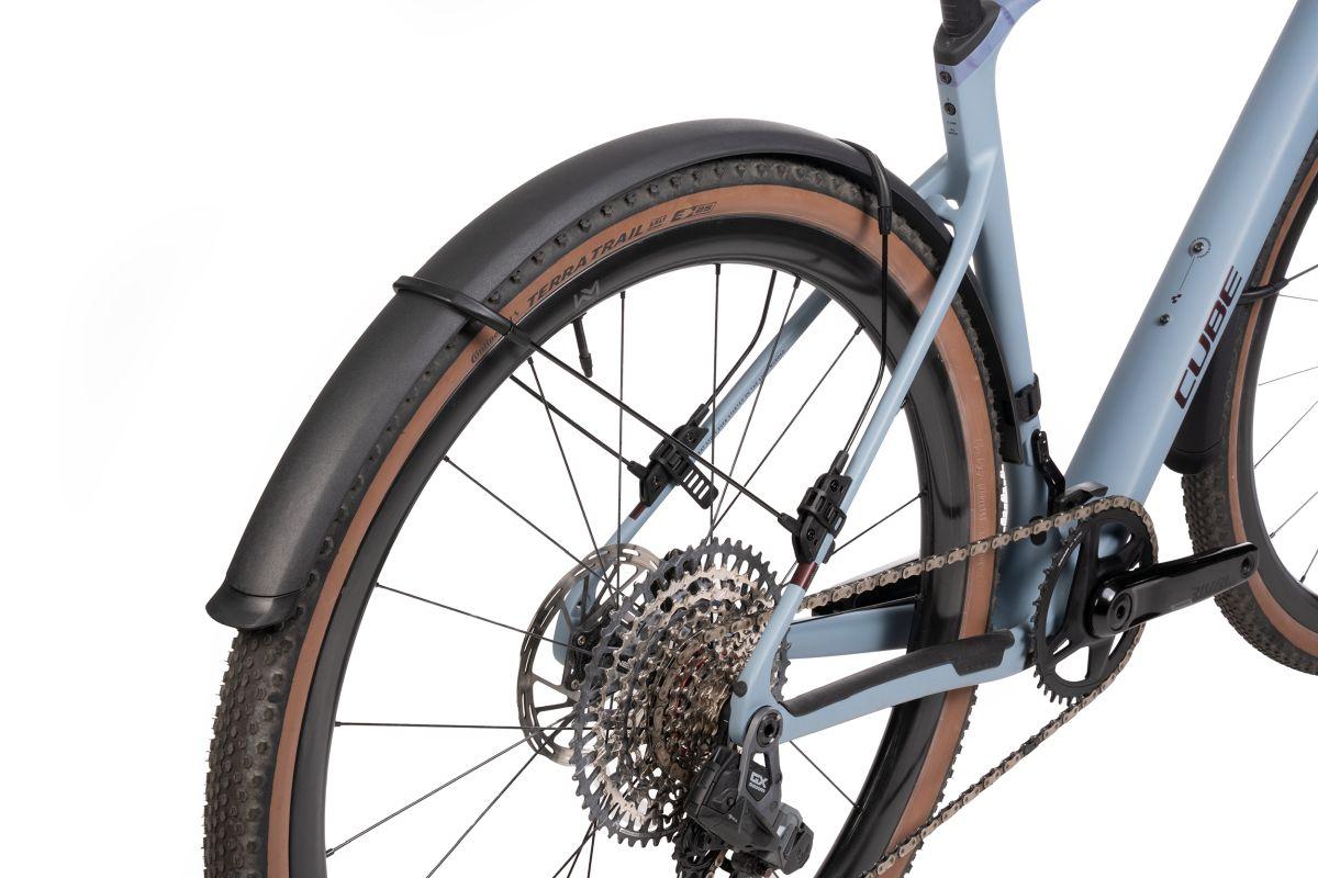 passend für die meisten 28" Gravel Bikes, maximale Reifenbreite 2", Seat Stay-, ST and Fork -Mount: Montage an den Sitzstreben, Sattelstütze und Gabel, nach einmaliger Montage, sekundenschnell montier- und demontierbar mittels Gummi Straps, 2-Komponenten Schutzblech mit abnehmbarer gummierter Spritzschutzlippe, glänzende Icon-Details