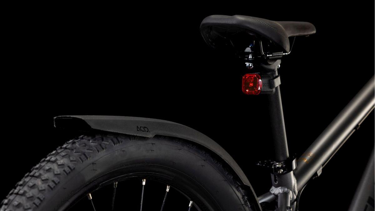 Der Rahmen des Acid 240 Disc Allroad besteht aus denselben hitzebehandelten 6061er-Aluminiumrohrsätzen wie der unserer Erwachsenen-Mountainbikes und ist demnach genauso robust und stabil. Allerdings haben wir seine Proportionen und das Gewicht auf die Anforderungen von Kindern abgestimmt. Die montierten Scheibenbremsen sind leicht bedienbar und unterstützen kraftvolle, sichere Bremsmanöver bei jedem Wetter. Außerdem mit an Bord: ein Zubehörset, bestehend aus Schutzblechen, Lichtern und Seitenständer. So sind die Youngsters für alle Abenteuer gerüstet. Sein Handling verspricht hohen Fahrspaß und zugleich Zuverlässigkeit, damit der Nachwuchs jede Menge Selbstvertrauen tanken kann. Weil sich der eine oder andere Sturz kaum vermeiden lässt, haben wir zudem ein einfach austauschbares Schaltauge verbaut. Dadurch gehören aufwendige Reparaturen nach einem Aufprall der Vergangenheit an.