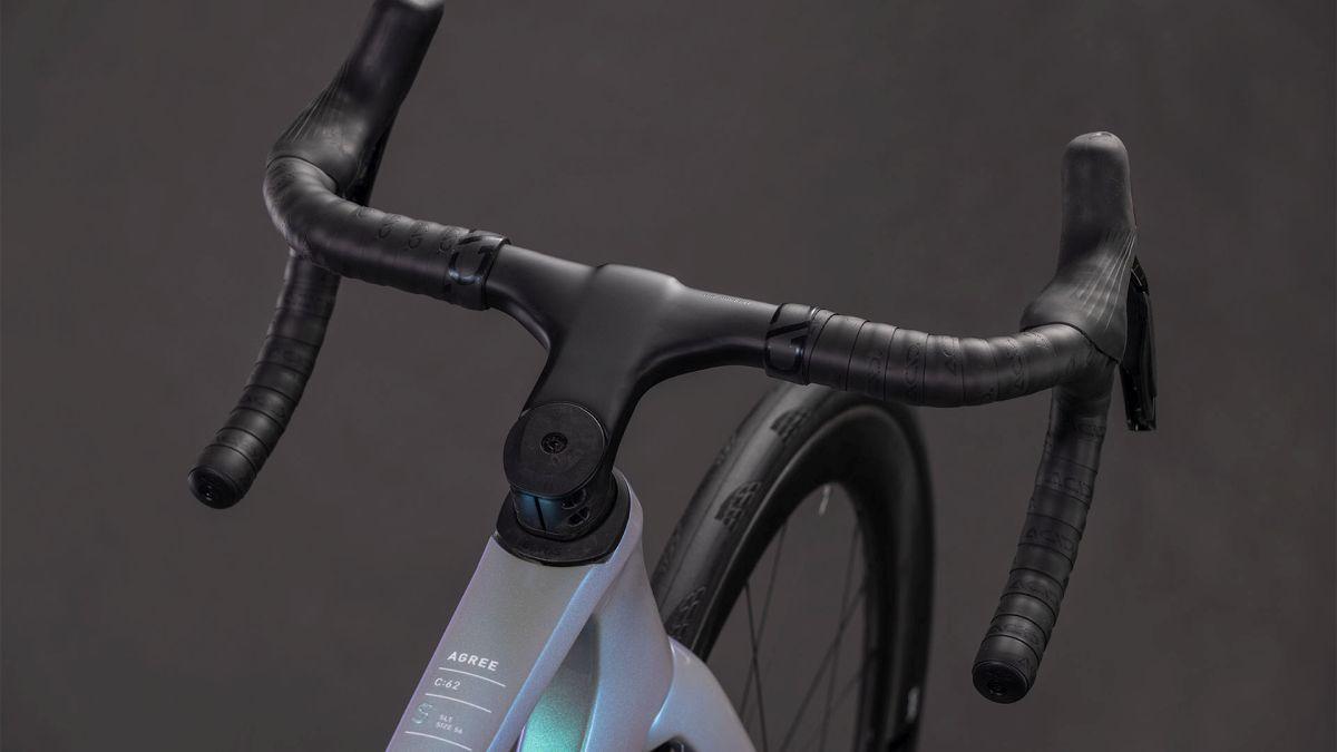 Schnelle Bikes sehen auch schnell aus – warum? Weil sich der strenge Fokus auf kompromisslose Aerodynamik in der Entwicklung auch im Look widerspiegelt. Ein integrierter Lenker und unser Advanced Internal Cable Routing verschaffen dem Agree C:62 den ersten entscheidenden Vorsprung. Ein weiteres Highlight – und im Rennen vielleicht das Zünglein an der Waage – sind die durchdacht geformten Rohrprofile, die wir von unseren wettkampferprobten Rennrad- und Zeitfahrrahmen übernommen haben. Weil wir an genügend Reifenfreiheit gedacht haben, lassen sich auch breitere und schnellere 32 mm Pneus aufziehen. Eine ausgeklügelte Carbonkonstruktion und schlanke Sitzstreben sorgen für dauerhaft hohen Fahrkomfort, selbst auf langen Strecken. Praktisch: In der integrierten Rahmenbox können Energieriegel, Werkzeug oder eine Jacke mitfahren.