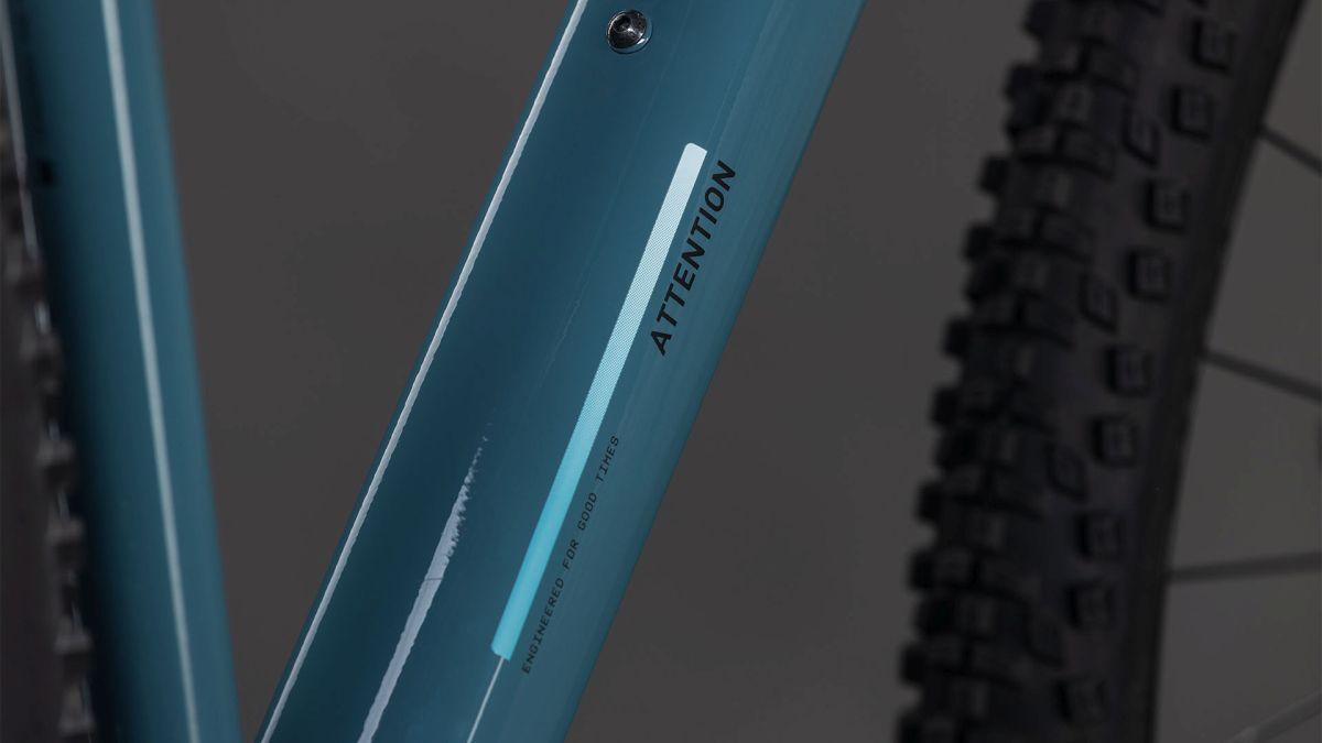 Mit seinem schlanken Chassis (nachrüstbar mit einer versenkbaren Sattelstütze) zieht das Attention SLX alle Blicke auf sich – und auch seine sorgfältig ausgesuchten Komponenten sind in Sachen Performance und Zuverlässigkeit eine Klasse für sich. Da wäre beispielsweise eine einfach einstellbare Judy Silver Luftfedergabel von RockShox, die sämtliche Schläge und Ruckler auf dem Trail butterweich abdämpft und für 1a-Lenkpräzision sorgt. Oder die Sram Eagle SX 12-fach Schaltung mit ihrem weiten Übersetzungsbereich, die nicht nur supereinfach zu bedienen ist, sondern auch top präzise von Gang zu Gang wechselt. Die hochwertige Ausstattung komplett machen leistungsstarke hydraulische Shimano Scheibenbremsen und maximal griffige 2.25 Zoll Reifen von Schwalbe. Keine Frage, dieses Bike kann schön und funktionell!