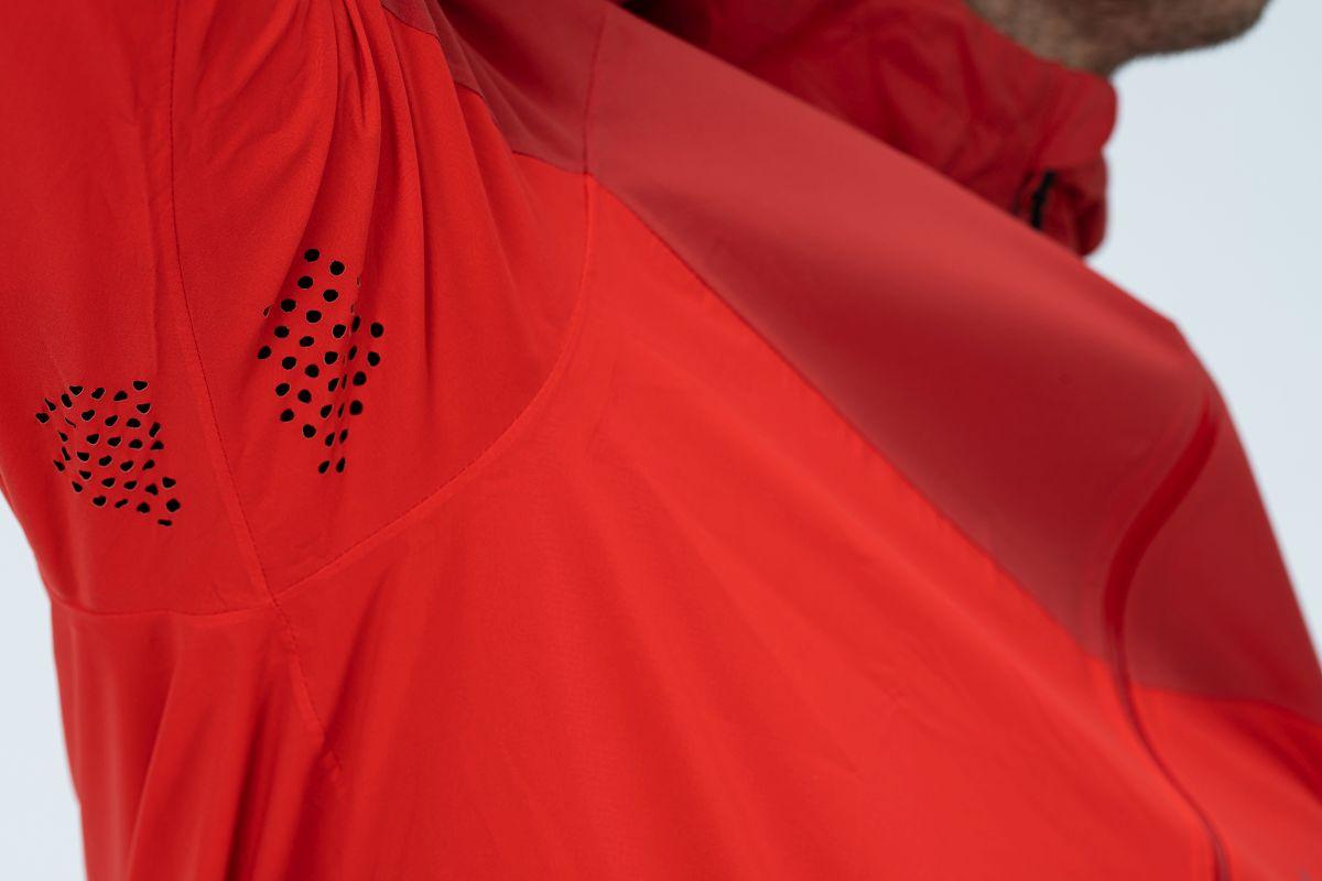 Die ATX Storm Jacket schützt dich dank wasserdichtem Funktionsmaterial effektiv vor Wind und Regen. Sogar der Frontreißverschluss ist wasserabweisend und die Kapuze mit zusätzlichem Schirm lässt sich über ein Tunnelzug-Gummiband enger ziehen. In den Taschen mit verdecktem Reißverschluss finden wichtige Utensilien sicher Platz. Reflektierende Elemente sorgen dafür, dass du auch bei diffusen Lichtverhältnissen auffällst. Die Perforation unter den Armen ermöglicht im Uphill angenehmen Durchzug. Der Saum wiederum lässt sich per Kordelzug individuell verstellen, damit keine kalte Luft von unten eindringt, wenn man es warm haben möchte.