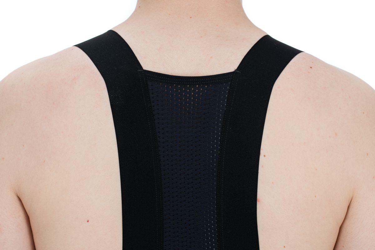 widerstandsfähiges und schnelltrocknendes Funktionsmaterial, reflektierende Elemente, weicher Innensaum mit breitem Silikonband, anschmiegsame Schulterträger, atmungsaktiver Mesh-Einsatz im Rückenbereich, CUBE Team Pad - hergestellt in Italien, Model ist 184 cm groß, Model trägt Größe M