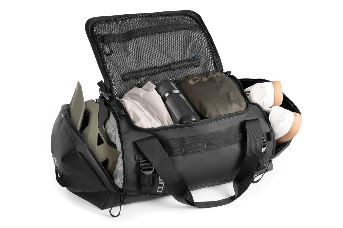 abnehmbare Schultergurte, MOLLE-System kompatibel mit CUBE GEAR BAGS, inkl. abnehmbarer und faltbarer Fußmatte, Schuh- und Helmfach, Netztaschen im Hauptfach