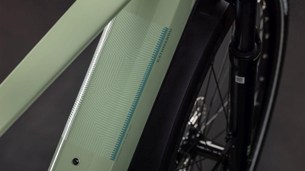 Der Rahmen des CUBE Kathmandu Hybrid sieht auf den ersten Blick vielleicht unspektakulär aus – auf den zweiten erschließen sich jedoch seine Eleganz und Klasse, außerdem die vielen Innovationen und cleveren Details. Dabei ist der samt 800 Wh PowerTube Akku ästhetisch und sauber ins Design integrierte CX Motor von Bosch nur eins der Highlights. Ein weiteres ist unsere Efficient Comfort Geometry, die harmonisch mit der 100 mm Federgabel Hand in Hand arbeitet, was die Kontrolle vor allem bei schwierigen Bedingungen optimiert. Dazu die interne Zugverlegung, die den cleanen Look des Chassis unterstreicht. Was noch? Ein vielseitiges, beinahe unzerstörbares UDH für einfache Ersatzteilverfügbarkeit, ein integrierter Kettenschutz und unser stabiler, robuster, überaus formschöner integrierter Gepäckträger IC 3.0, auf dem alles Platz findet, was auf Abenteuertour mit muss.