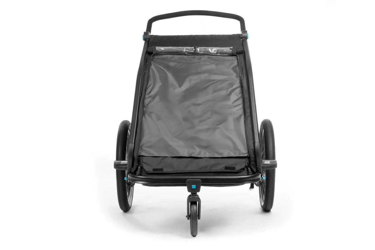 Der CUBE Kinder Fahrradanhänger Double CMPT ist der optimale Begleiter durch den Alltag. Das Multitalent besticht durch ausgeklügelte Funktionen als Fahrrad-Anhänger und Kinderwagen. Der große Insektenschutz an der Front und den Seiten hält ungewollte Fahrgäste vor dem Eindringen ab, ohne dabei die Frischluftzirkulation zu beeinflussen. Dank Sonnenschutz werden die kleinen Fahrgäste nicht bei ihren Nickerchen geblendet. Der Spritzschutz hält die Kids auch bei matschigen Fahrten trocken. Die Sitz- und Rückenpolster sowie Kopfpolster mit Helmpocket, machen die Fahrt für die Kleinen zum komfortablen Vergnügen. Die Federung ist individuell einstellbar, je nach Untergrund und Gewicht. Mit dem zusätzlich erhältlichen Jogger Kit lassen sich alle Ausflüge noch flexibler gestalten.