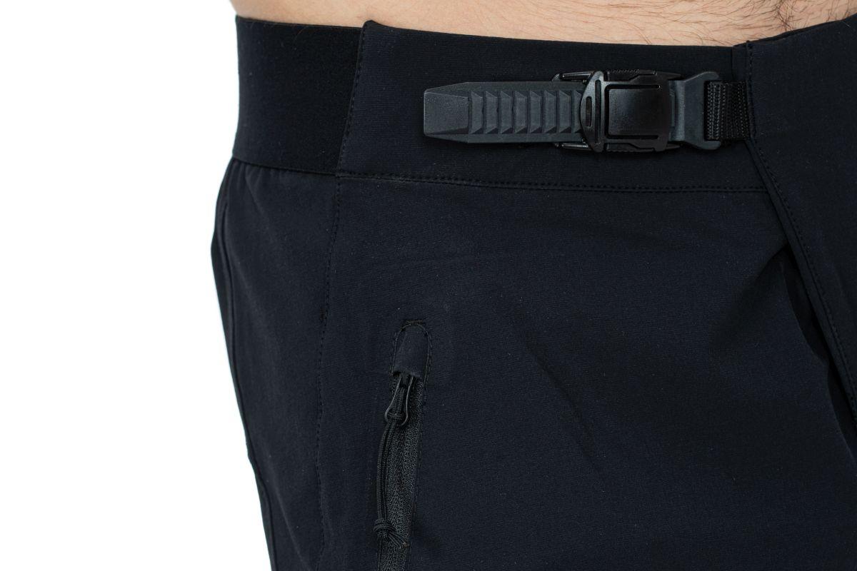 Ratschenverschluss für sicheren Komfort und schnelle Handhabung unterwegs, Eingrifftaschen mit Reißverschluss, schmal zulaufende Beinabschlüsse zum Schutz vor Hängenbleiben, beständige, wasserabweisende DWR-Beschichtung, elastischer Gummibund, Model ist 186 cm groß, Model trägt Größe L
