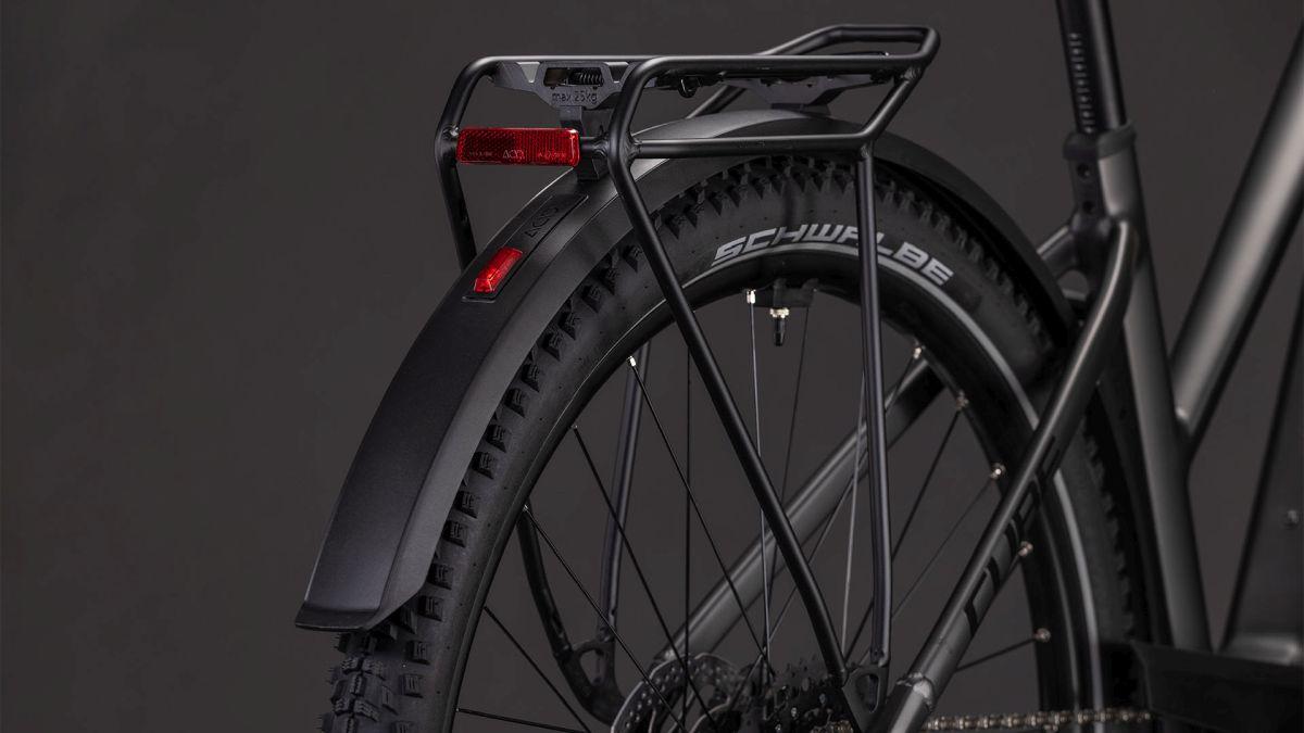 Der Trapezrahmen des Nuride Hybrid Performance sieht einfach toll aus – richtig edel! Doch wie immer gilt: Die Qualität steckt im Detail. Da wären zum Beispiel der leistungsstarke Bosch Performance Antrieb mit Bosch Smart System und der 600 Wh PowerTube Akku, die beide formschön in das cleane Design integriert wurden und auf Entdeckertour geschmeidige Unterstützung im Vorwärts liefern. Die Federgabel ermöglicht selbst auf unebenen Strecken angenehmen Fahrkomfort – und auch die Efficient Comfort Geometry macht ihrem Namen alle Ehre. Ebenso mit im Ausstattungspaket ist viel praktisches Zubehör, bestehend aus Lichtanlage, Seitenständer und Schutzblechen. Da kann's doch direkt losgehen, oder?