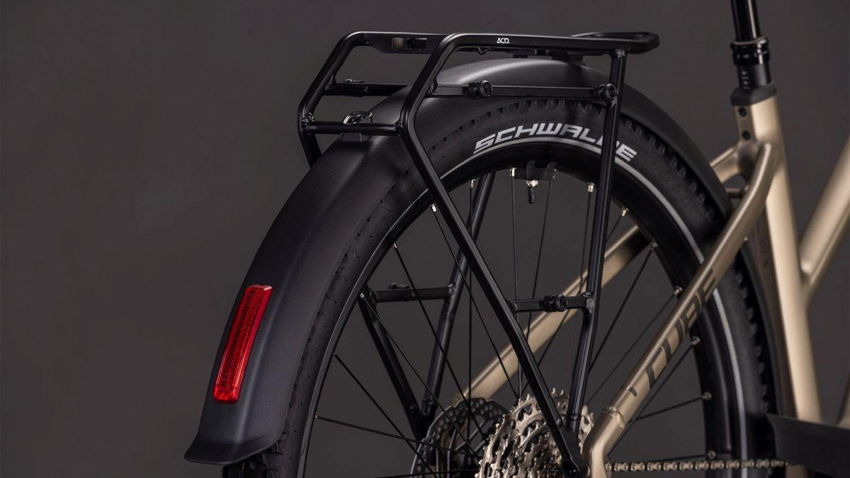 Auf den ersten Blick sieht der Nuride Hybrid Trapezrahmen vielleicht unspektakulär aus, doch wer genau schaut, wird von seiner subtilen Eleganz und den innovativen Details begeistert sein. Neben einer Federgabel mit 100 mm Federweg für ein Plus an Fahrkomfort und Kontrolle haben wir das Chassis mit großzügiger Reifenfreiheit (sogar inklusive der mitgelieferten Schutzbleche) ausgestattet. Im Inneren verlaufende Züge unterstreichen die cleane Optik. Ebenso harmonisch ins Rahmendesign integriert sind der Bosch CX Antrieb und der 600 Wh PowerTube Akku. On top gibt's einen integrierten Kettenschutz, serienmäßig verbaute Schutzbleche, Lichter, einen Seitenständer und unseren stabilen semi-integrierten Gepäckträger 2.0. Da kann das nächste Zweiradabenteuer direkt starten, oder?